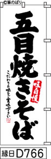 「のぼり【五目 焼きそば】白地に黒の手書き筆文字[d766](商標登録番号6807113)『受注生産』」