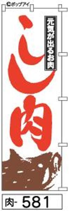 【しし肉】のぼり旗|送料無料 目立つ手書き筆文字[581]白地に赤