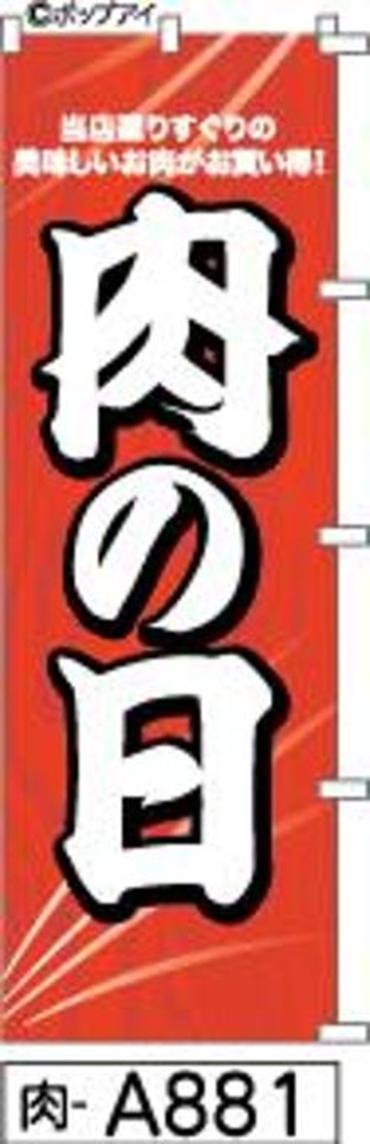 「のぼり【肉の日】赤に白の筆文字[肉A881](商標登録番号6807113)」