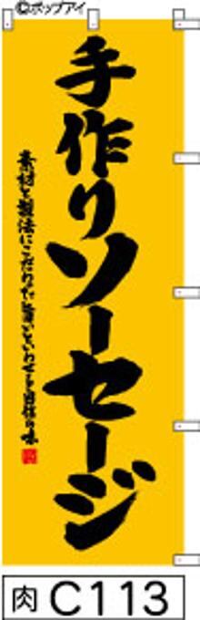 【手作りソーセージ】のぼり旗|送料無料 目立つ手書き筆文字[c113]橙色に黒