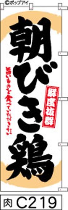 【朝びき鶏】のぼり旗|送料無料 目立つ手書き筆文字[c219]白地に黒