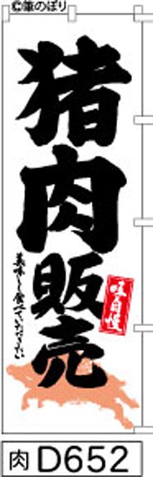 【猪肉販売】のぼり旗|送料無料 目立つ手書き筆文字[d652]白地に黒