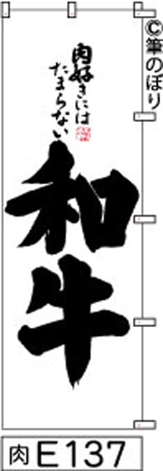 【和牛】のぼり旗|送料無料 目立つ手書き筆文字[e137]白地に黒
