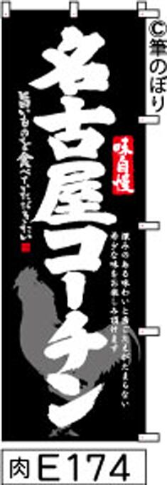 【名古屋コーチン】のぼり旗|送料無料 目立つ手書き筆文字[e174]黒白抜き