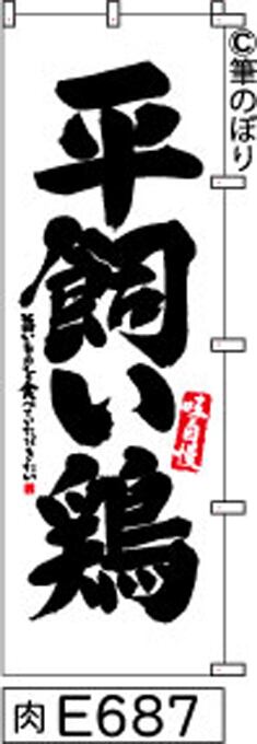 【平飼い鶏】のぼり旗|送料無料 目立つ手書き筆文字[e687]白地に黒