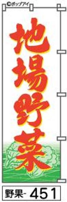 【地場野菜】のぼり旗|送料無料 目立つ手書き筆文字[451]白地に緑柄赤