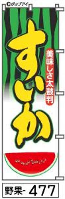 【すいか】のぼり旗|送料無料 目立つ手書き筆文字[477]緑と白に黄色