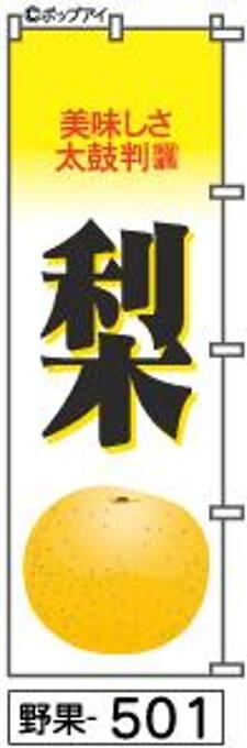 品質が良い「のぼり【梨】[野果501]」は、特に梨のデザインが魅力的な既製品のぼり旗です!豊かな実りをイメージさせるデザインが、遠くからでも目を引き、通行人の目を楽しませます。お店の前に掲げることで、商品の魅力を存分にアピールできます。