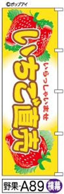 横幕【いちご直売】のぼり旗|送料無料 目立つ手書き筆文字[a089]いちご絵に黄色文字