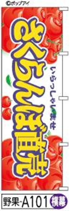 横幕【さくらんぼ直売】のぼり旗|送料無料 目立つ手書き筆文字[a101]さくらんぼ絵に黄色文字