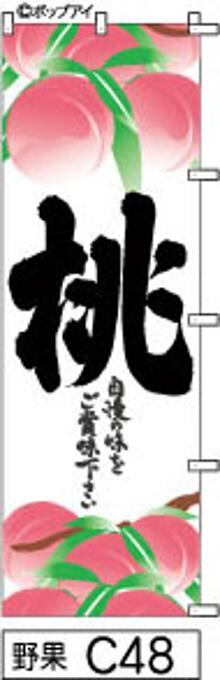 【桃】のぼり旗|送料無料 目立つ手書き筆文字[c048]白地上下に桃絵黒