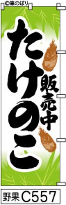 【たけのこ販売中】のぼり旗|送料無料 目立つ手書き筆文字[c557]白地に黄緑笹葉黒