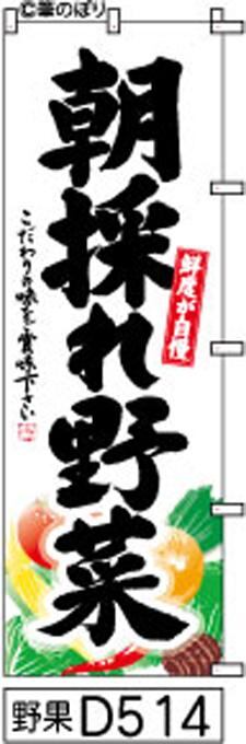 【朝採れ野菜】のぼり旗|送料無料 目立つ手書き筆文字[d514]白に黒