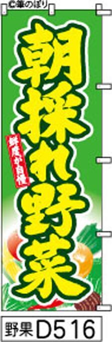 【朝採れ野菜】のぼり旗|送料無料 目立つ手書き筆文字[d516]黄緑に黄色