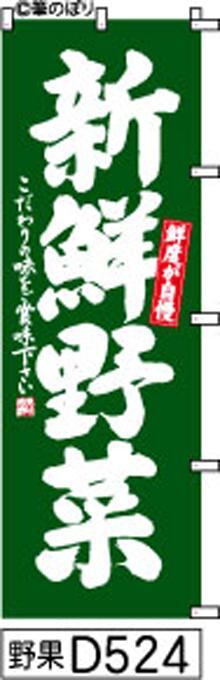 【新鮮野菜】のぼり旗|送料無料 目立つ手書き筆文字[d524]濃緑白抜き