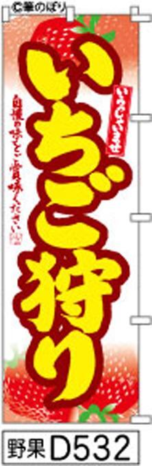 【いちご狩り】のぼり旗|送料無料 目立つ手書き筆文字[d532]白地に黄色