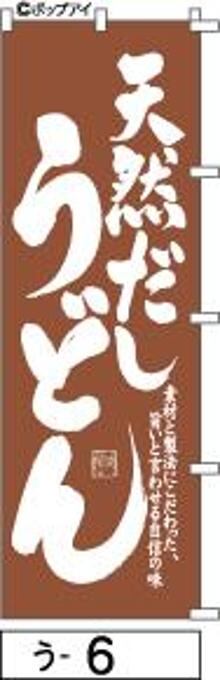 「のぼり【天然だしうどん】茶色に白抜き手書き筆文字[う006](商標登録番号6807113)『受注生産』」