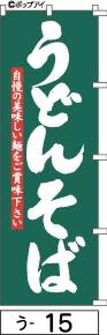 「 のぼり【うどんそば】緑に白抜き手書き筆文字[う015](商標登録番号6807113)『受注生産』」