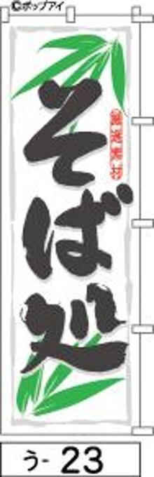 「そば処 のぼり 白地に笹の葉黒の手書き筆文字[う023](商標登録番号6807113)『受注生産』」