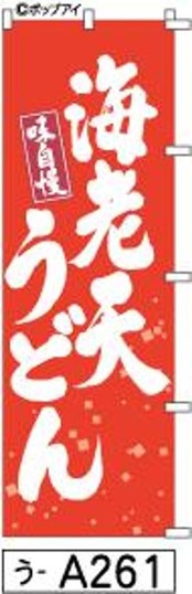 「のぼり【海老天うどん】赤の白抜き手書き筆文字[うA261](商標登録番号6807113)『受注生産』」