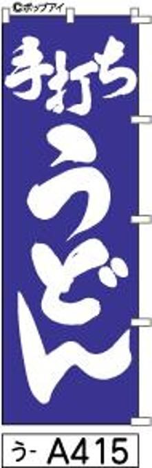 「のぼり【手打ちうどん】紺の白抜き手書き筆文字[うA415](商標登録番号6807113)『受注生産』」