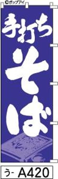 「のぼり【手打ちそば】紺の白抜き手書き筆文字[うA420](商標登録番号6807113)『受注生産』」
