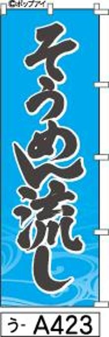 「のぼり【そうめん流し】水色に黒の手書き筆文字[うA423](商標登録番号6807113)『受注生産』」