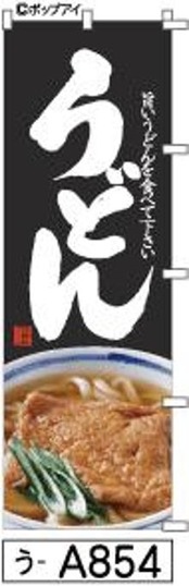 【うどん】のぼり旗|送料無料 目立つ手書き筆文字[a854]黒に写真白抜き