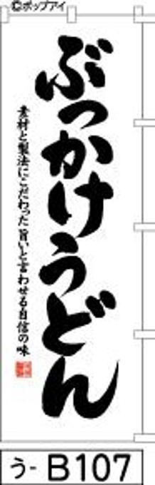 「のぼり【ぶっかけうどん】白地に黒の手書き筆文字[うB107](商標登録番号6807113)『受注生産』」