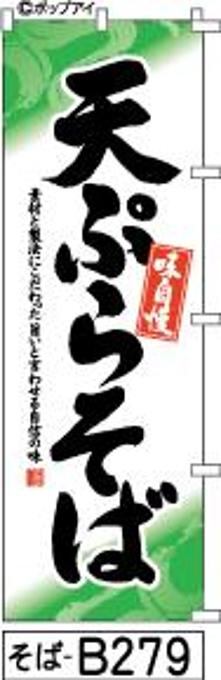 【天ぷらそば】のぼり旗|送料無料 目立つ手書き筆文字[b279]白地に緑黒