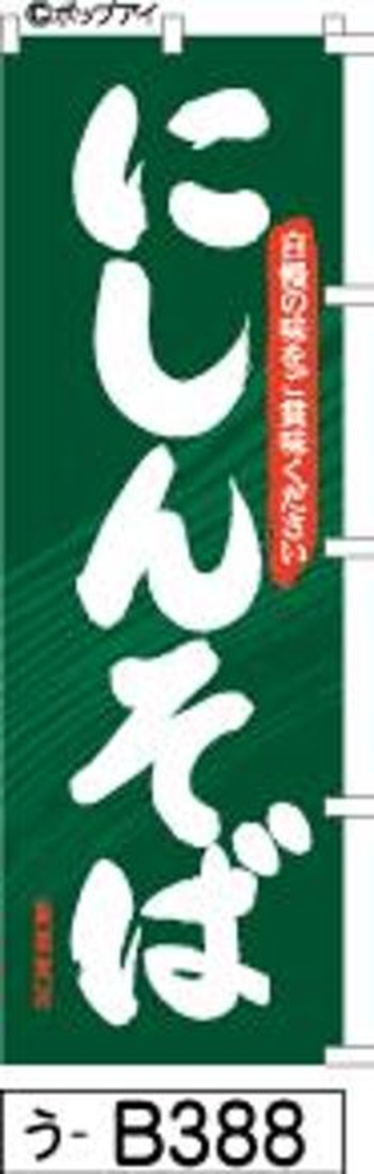 「のぼり【にしんそば】緑の白抜き手書き筆文字[うB388](商標登録番号6807113)『受注生産』」