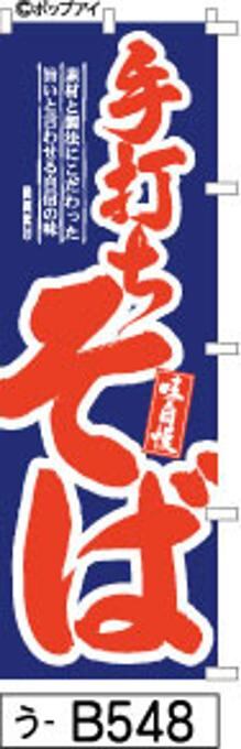 【手打ちそば】のぼり旗|送料無料 目立つ手書き筆文字[b548]紺に赤