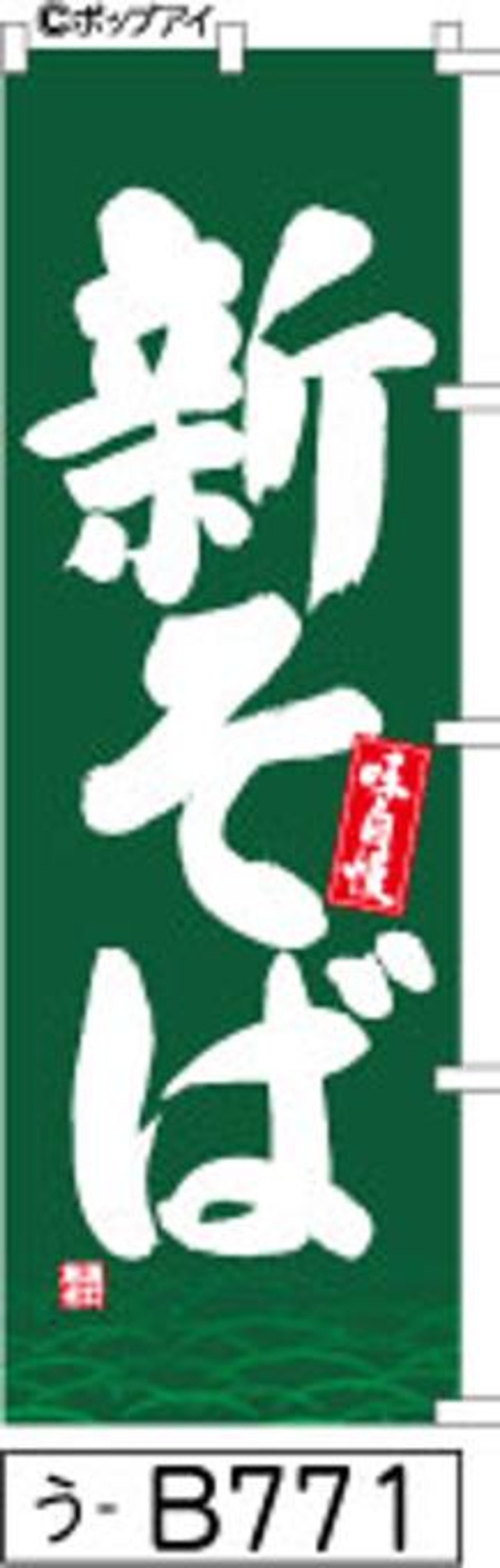 「のぼり【新そば】緑の白抜き手書き筆文字[うB771](商標登録番号6807113)『受注生産』」
