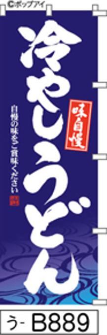 【冷やしうどん】のぼり旗|送料無料 目立つ手書き筆文字[b889]青波模様に白