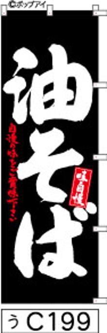 「 のぼり【油そば】黒の白抜き手書き筆文字[うC199](商標登録番号6807113)『受注生産』」