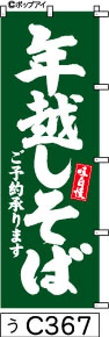 「 のぼり旗【年越しそばご予約】緑に白抜き手書き筆文字[うC367](商標登録番号6807113)『受注生産』」
