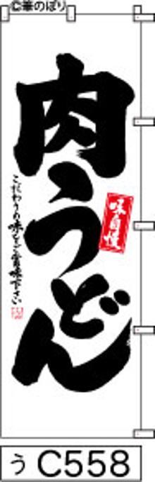 【肉うどん】のぼり旗|送料無料 目立つ手書き筆文字[c558]白地に黒