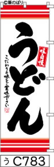 「のぼり【うどん】白地に赤の帯黒の手書き筆文字[うC783](商標登録番号6807113)『受注生産』」