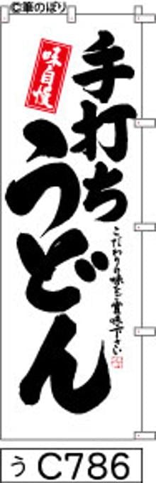 「のぼり【手打ちうどん】白地に黒の手書き筆文字[うC786](商標登録番号6807113)『受注生産』」