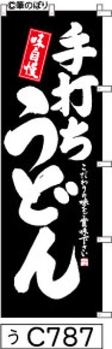 「のぼり【手打ちうどん】黒の白抜き手書き筆文字[うC787](商標登録番号6807113)『受注生産』」