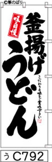 「のぼり【釜揚げうどん】白地に黒の手書き筆文字[うC792](商標登録番号6807113)『受注生産』」