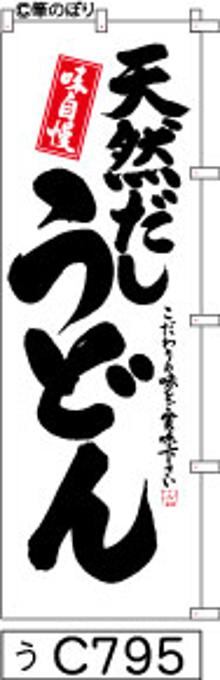 「のぼり【天然だしうどん】白地に黒の手書き筆文字[うC795](商標登録番号6807113)『受注生産』」