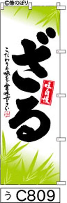 【ざる】のぼり旗|送料無料 目立つ手書き筆文字[c809]白地に黄緑笹柄黒