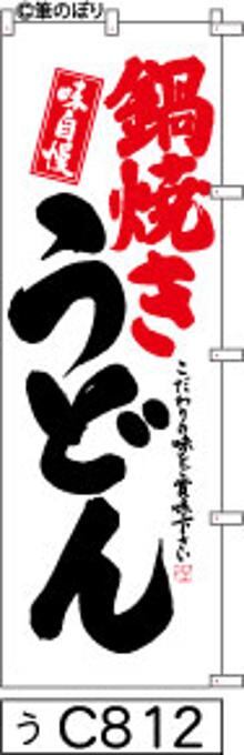 「のぼり【鍋焼きうどん】白地に赤と黒の手書き筆文字[うC812](商標登録番号6807113)『受注生産』」