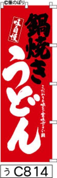 「のぼり【鍋焼きうどん】赤に黒と白抜き手書き筆文字[うC814](商標登録番号6807113)『受注生産』」