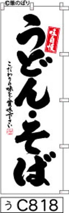 【うどんそば】のぼり旗|送料無料 目立つ手書き筆文字[c818]白地に黒