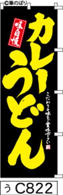 「のぼり【カレーうどん】黒に黄色の手書き筆文字[うC822](商標登録番号6807113)『受注生産』」