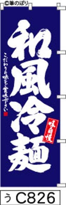 「のぼり【和風冷麺】青の白抜き手書き筆文字[うC826](商標登録番号6807113)『受注生産』」