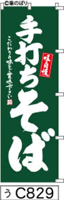 【手打ちそば】のぼり旗|送料無料 目立つ手書き筆文字[c829]濃い緑白抜き