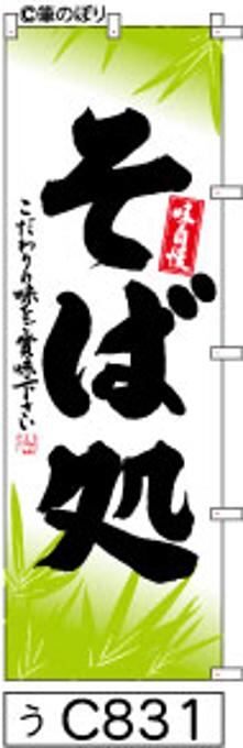 【そば処】のぼり旗|送料無料 目立つ手書き筆文字[c831]白地に黄緑竹柄黒
